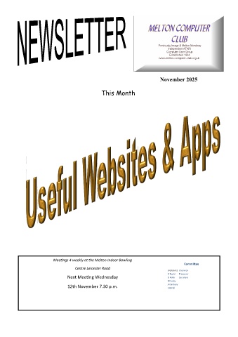 The Melton Computer Club meets usually every 4 weeks in the conference room at the Melton Indoor Bowling Centre, Leicester Road, Melton Mowbray, Leicestershire.