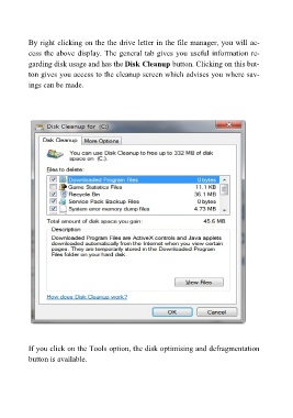 garding disk usage and has the Disk Cleanup button. Clicking on this but-