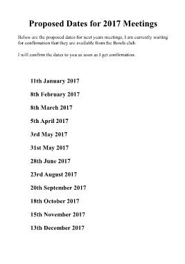 Below are the proposed dates for next years meetings, I am currently waiting