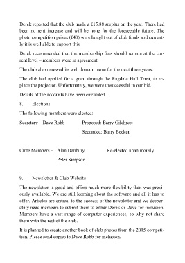 Derek reported that the club made a £15.88 surplus on the year. There had