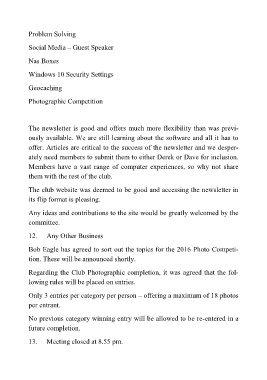 Bob Eagle has agreed to sort out the topics for the 2016 Photo Competi-