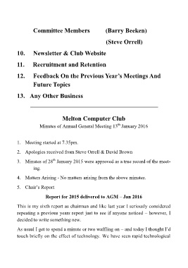 Minutes of Annual General Meeting 13 January 2016