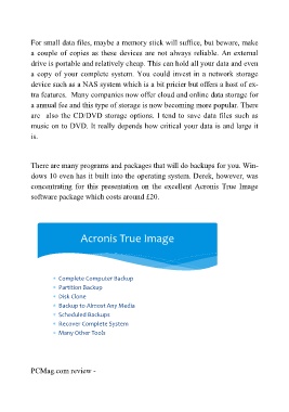concentrating for this presentation on the excellent Acronis True Image
