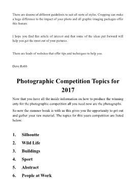 Photographic Competition Topics for