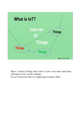 What is IoT? Internet Things Of Things Things Things MMCC – IOT - 2017 Since I started writing these notes I have seen more and more references to IoT on the internet. So as I found new bits we might jump around a little.