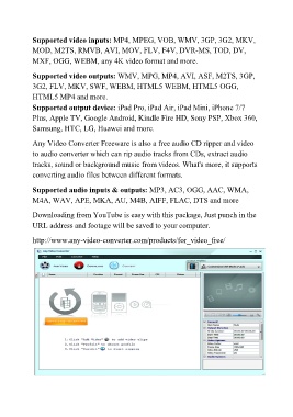 Supported video inputs: MP4, MPEG, VOB, WMV, 3GP, 3G2, MKV,