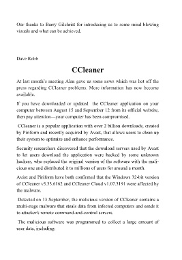 press regarding CCleaner problems. More information has now become