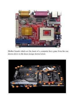 Mother boards which are the heart of a computer have gone from the one shown above to the latest design shown below.