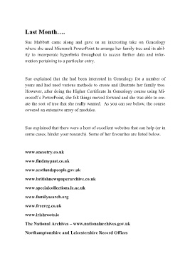 Sue explained that she had been interested in Genealogy for a number of