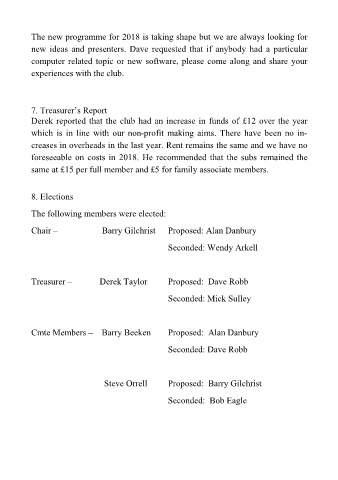 Treasurer – Derek Taylor Proposed: Dave Robb