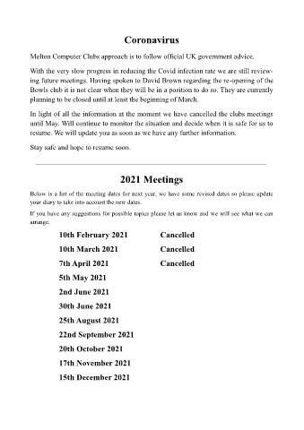 Below is a list of the meeting dates for next year, we have some revised dates so please update