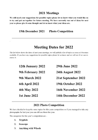 to try and put an together for future meeting. We have currently run out of ideas for next