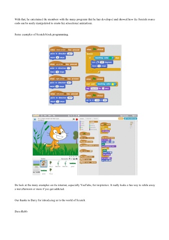 Our thanks to Barry for introducing us to the world of Scratch.