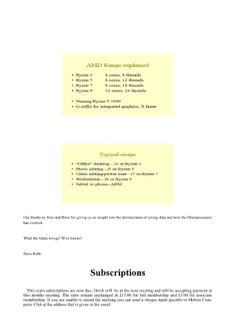 this months meeting. The rates remain unchanged at £15.00 for full membership and £5.00 for associate