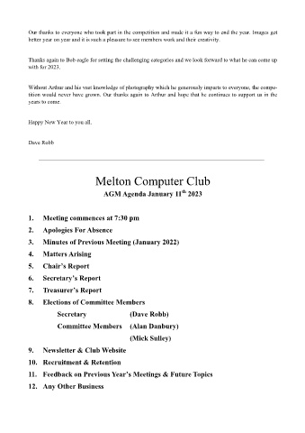 tition would never have grown. Our thanks again to Arthur and hope that he continues to support us in the