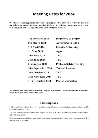 If you are unable to attend the meeting and wish to pay your subscription please send a cheque to me at thw