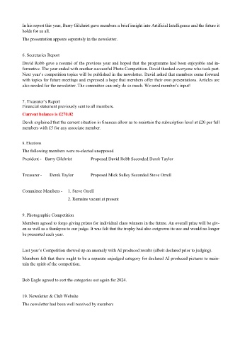 formative. The year ended with another successful Photo Competition. David thanked everyone who took part.