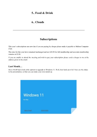If you are unable to attend the meeting and wish to pay your subscription please send a cheque to me at the
