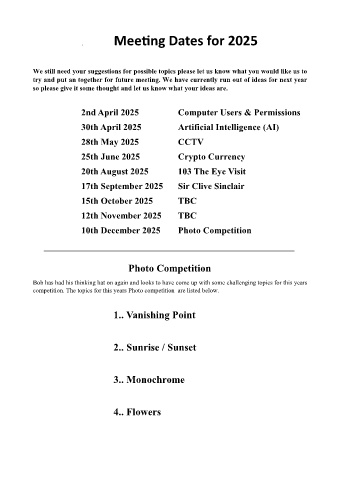 try and put an together for future meeting. We have currently run out of ideas for next year