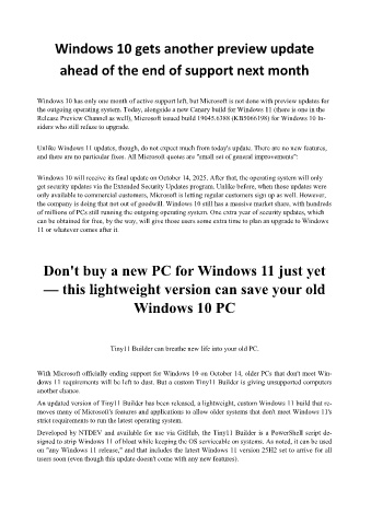 Windows 10 has only one month of active support left, but Microsoft is not done with preview updates for