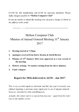 If you are unable to attend the meeting you can post a cheque to Derek at