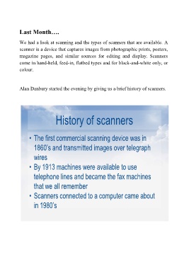 Alan Danbury started the evening by giving us a brief history of scanners.
