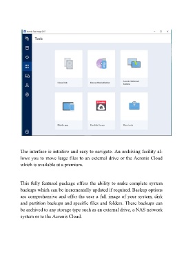 lows you to move large files to an external drive or the Acronis Cloud