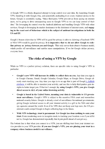 ment surveillance. Google’s VPN is subject to the secretive FISA court and warrantless