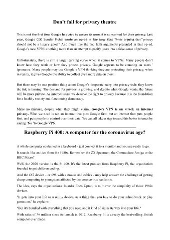 ignorance. Many people may use Google’s VPN thinking they are protecting their privacy, when