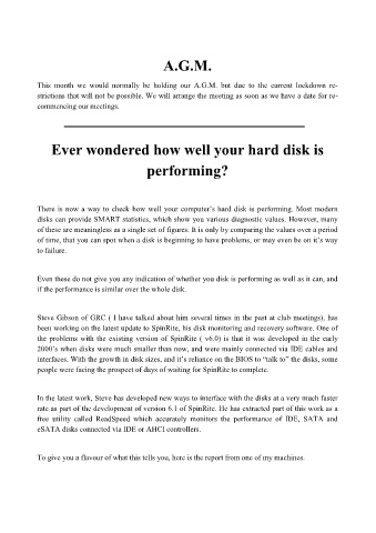 This month we would normally be holding our A.G.M. but due to the current lockdown re-