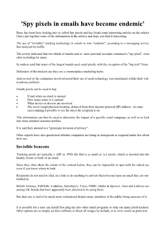 Barry has been busy looking into so called Spy pixels and has found some interesting articles on the subject