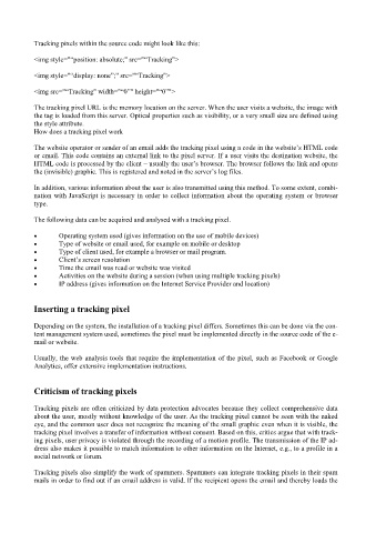 about the user, mostly without knowledge of the user. As the tracking pixel cannot be seen with the naked