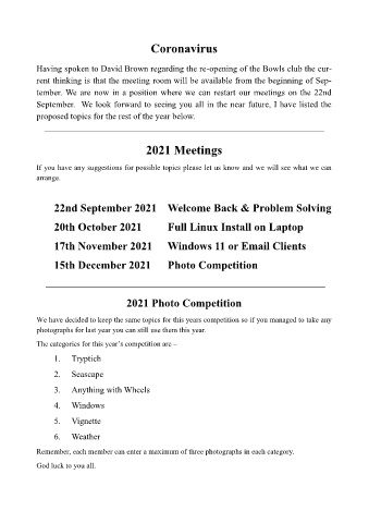 Having spoken to David Brown regarding the re-opening of the Bowls club the cur-