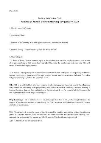 Minutes of Annual General Meeting 15 January 2020