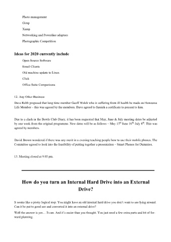Committee agreed to look into the feasibility of putting together a presentation – Smart Phones for Dummies.
