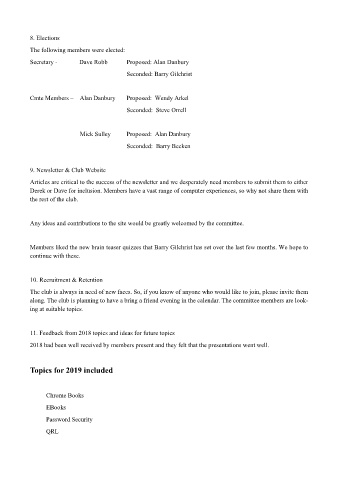 Secretary - Dave Robb Proposed: Alan Danbury