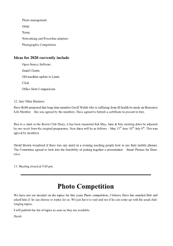 We have not yet decided on the topics for this years Photo competition, I believe Dave has emailed Bob and