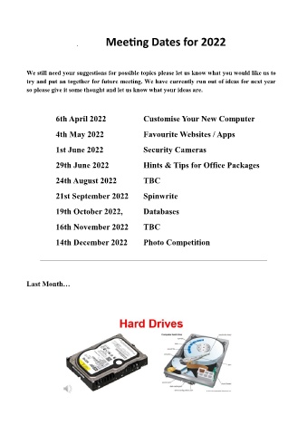 try and put an together for future meeting. We have currently run out of ideas for next year