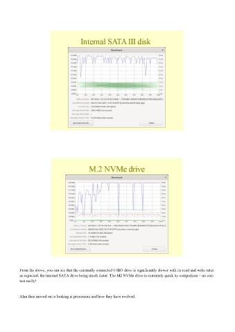 as expected, the internal SATA drive being much faster. The M2 NVMe drive is extremely quick by comparison – no con-
