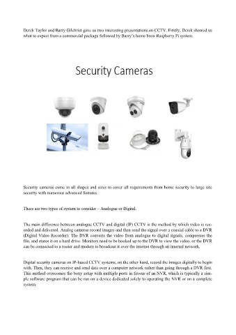 Derek Taylor and Barry Gilchrist gave us two interesting presentations on CCTV. Firstly, Derek showed us