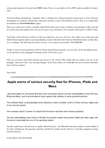 iPads and Macs, and recommended all users update their software to block potential intrusion.