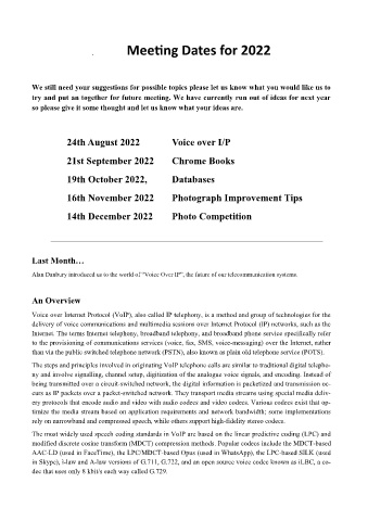 Meeting Dates for 2022