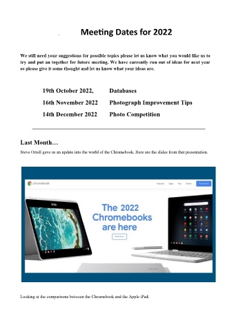 try and put an together for future meeting. We have currently run out of ideas for next year
