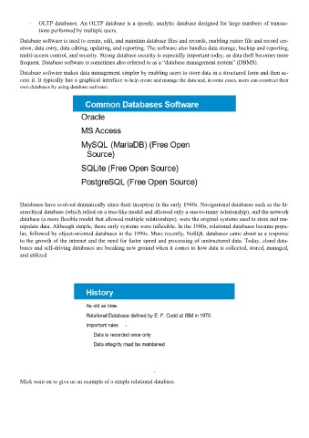 · OLTP databases. An OLTP database is a speedy, analytic database designed for large numbers of transac-