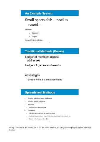 Having shown us all the reasons not to use the above methods, mick began developing the simple relational database.