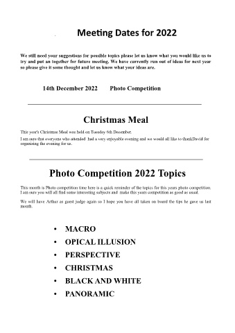 This month is Photo competition time here is a quick reminder of the topics for this years photo competition.
