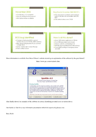 Alan finally showed us examples of the software in action, identifying potential error in various drives.