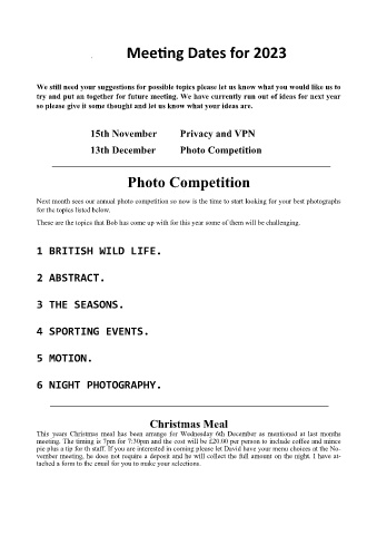 This years Christmas meal has been arrange for Wednesday 6th December as mentioned at last months