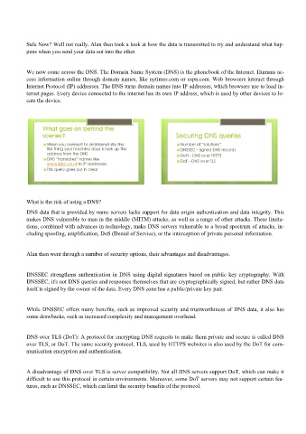 over TLS, or DoT. The same security protocol, TLS, used by HTTPS websites is also used by the DoT for com-