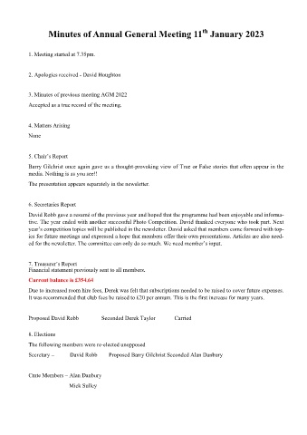 tive. The year ended with another successful Photo Competition. David thanked everyone who took part. Next